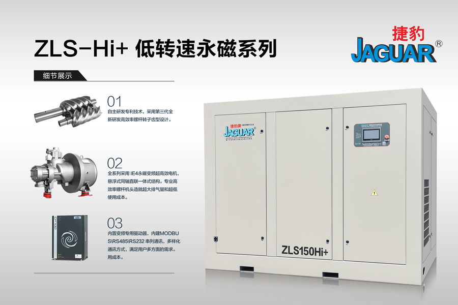 全新捷豹永磁變頻HI+系列,采用全新優化螺桿機頭,更高的效率,更低的轉速,更大的螺桿機頭,全新設計的永磁電機,一切為客戶量身定制,絕無僅有的全新永磁螺桿式空氣壓縮機!